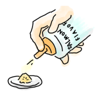 獣医師に教えてもらい、うちの子の好きなサーモンの香りの亜麻仁油をかけています。かけるとすぐに全部舐めます。Mさん・モカちゃん(雑種/猫)